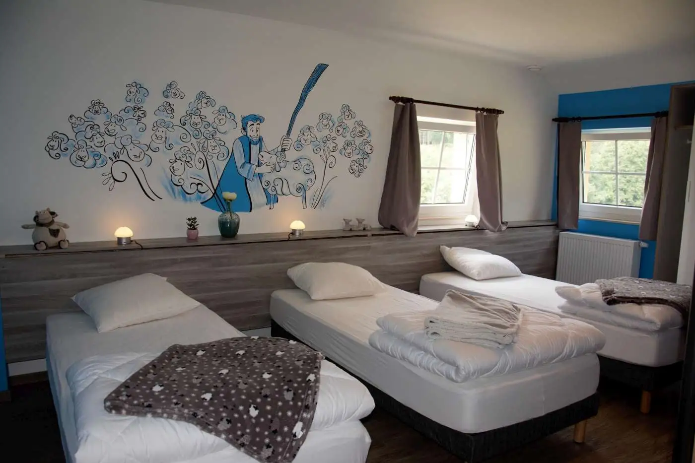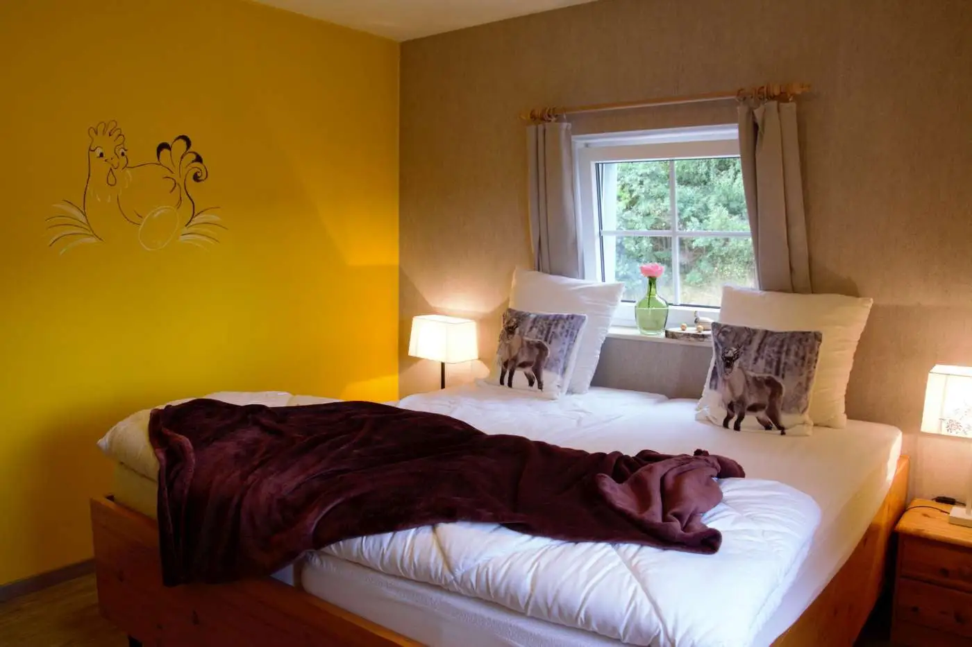 5 chambres à thème (animaux de la ferme, décoration chaleureuse)